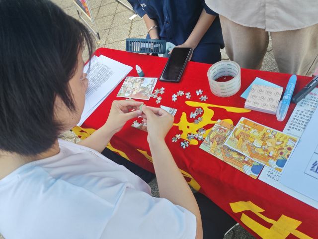 本次的525心理健康活动日于5月25日上午9:40在明德广场举行开幕仪式,全体心理委员及学校领导积极到场。在上午10:00,伴随着开幕仪式的结束,心理健康游园活动正式开始。本部门共有6个游戏,分别为“默契折纸”“你懵没懵”“趣味夹弹珠”“欢乐拼图”“盲人摸象”“我的人生我做主”,涉及单人双人合作竞速等,让同学们感受到丰富的游戏体验。每参加完成一项游戏便可以得到一次抽奖机会,本次活动奖品丰厚,包含马克杯,积木,U型枕玩偶等。在进行游戏的同时还有热血沸腾的加油声和多种多样的奖品激励,使得整个活动火爆进行。其中“默契折纸”(需要两人参加,一方提供一只手,通过双人合作在规定时间内共同完成指定图形的折叠)最为考验双方的合作协调能力,在清楚的思路规划和双方协作的情况下才能完成目标,在来参加活动的同学中也极受欢迎。在迎来和送走一批又一批笑脸后,本次的活动也逐渐走向了尾声,最终,在17:00正式宣告结束。
