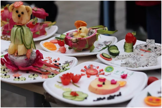 民以食为天,食以安为先。注重食品安全问题的同时还要注重创新,在比赛中同学们积极创新,在活动中同学们分享自己家乡的美食,甚至很多同学不禁拿起水果刀变身小福贵,发挥自己的想象力,展现其自己的神奇刀工。同时创作者为感兴趣的同学演示了制作过程。