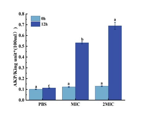 研究分析AEO对P. fluorescens的抗菌活性发现,AEO对P. fluorescens 的MIC为12.5 μl/mL,MBC为25 μl/mL,SEM观察到荧光假单胞菌在2MIC的AEO处理后细胞形态受损严重,菌体大量死亡,显著抑制了细胞生长速率。此外,AEO处理导致AKP酶活性和电导率增加,细胞内核酸和蛋白等大分子成物质明显泄露,证明细胞壁和细胞膜的完整性被破坏。