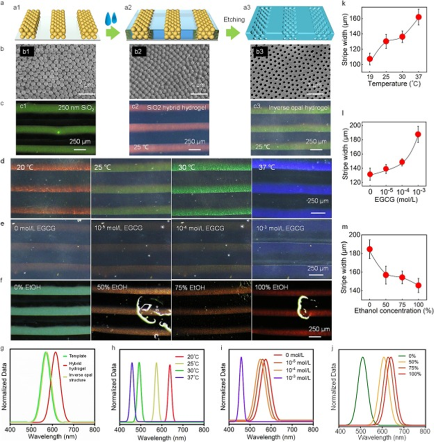 反蛋白石结构色条纹的制备及其对温度、EGCG浓度和乙醇浓度的响应行为
