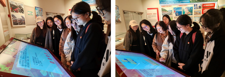 随后,同学们步入展厅,珍贵的历史照片、实物以及详实的文字介绍映入眼帘,全面展现了中国共产党百年来的奋斗历程与辉煌成就。从嘉兴南湖的小小红船,到领航中国行稳致远的巍巍巨轮,中国共产党带领人民披荆斩棘,书写了一部部壮丽史诗。这不仅是一次历史的回顾,更是一次深刻的精神洗礼,激励着同学们在新时代勇担使命,为国家的繁荣富强贡献自己的力量。