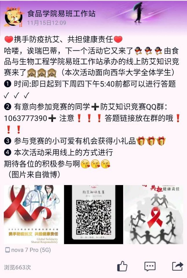 2020年12月1日是第33个“世界艾滋病日”,365电子娱乐官方网站积极响应号召,举办了线上防艾知识竞赛活动。此次活动时间为2020年11月16日至24日,活动以线上答题的方式进行。