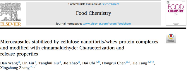近期,365电子娱乐官方网站唐洁教授、张兴中讲师研究团队在《Food Chemistry》(中科院1区, JCR1区, IF=8.5)、《LWT-Food Science and Technology》(中科院1区, JCR1区, IF=6.0)、《International Journal of Biological Macromolecules》(中科院1区, JCR1区, IF=7.7)国际TOP期刊上针对香辛料精油纳米乳液及其微胶囊包埋体系的构建与性能调控等发表多篇研究论文。