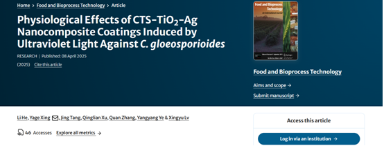 近日,食品与生物工程学院“农产品贮藏与加工”团队在农林科学领域国际顶尖期刊《Food Chemistry》(Q1, IF:8.5)发表题为“Effects of chitosan and acetic acid composite coating on the quality and metabolomic characteristics of postharvest pineapple”的论文。在专注于食品科学与生物加工技术领域的国际权威学术期刊《Food and Bioprocess Technology》(Q2,IF:5.3)发表题目为“Physiological Effects of CTS-TiO2-Ag Nanocomposite Coatings Induced by Ultraviolet Light Against C. gloeosporioides”的论文。
