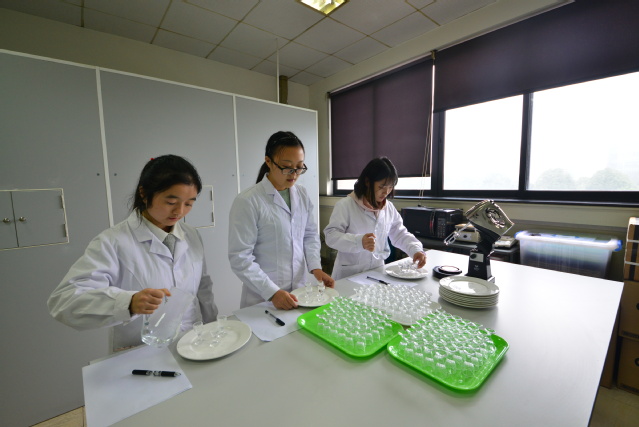 食品感官实验室面向食品质量与安全、食品科学与工程专业本科生开设课程实验。实验室配备有电子鼻、嗅闻仪、冰箱、消毒柜、烘箱、感官评价台等设备,可以开展感官鉴评的实验教学工作,也可以为本科学生完成毕业论文、研究生完成学位论文和教师的科研工作提供场地和仪器设备支持。