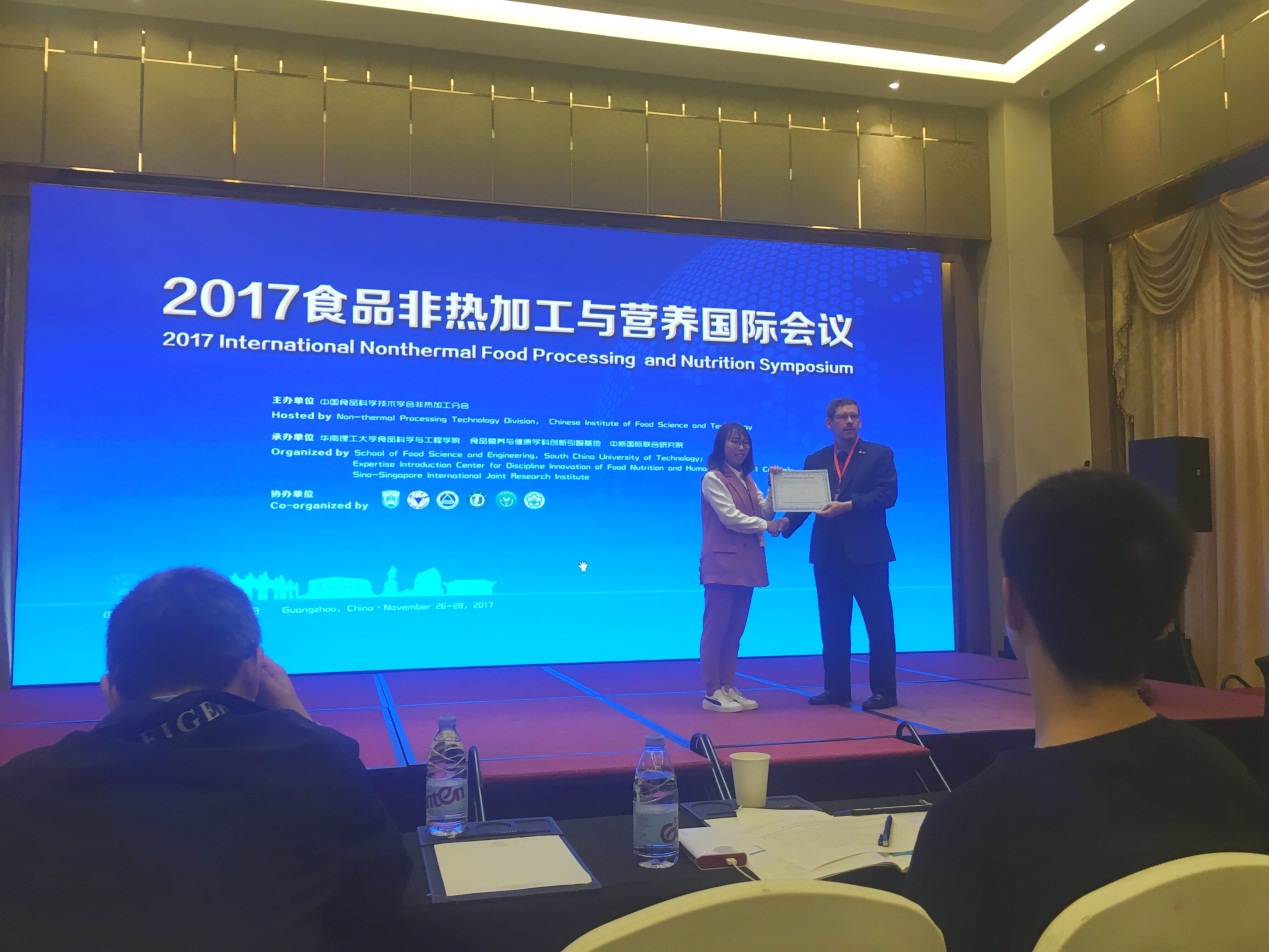 我校研究生在2017食品非热加工与营养国际会议上做全英文报告并获得“最佳口头报告奖”