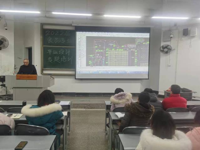 12月31日,我院食品工程系在6B201开展了2022届本科生毕业设计专题培训,邀请了我院兼职教授—四川省食品发酵工业研究院高级工程师曾泽生来校指导食品工厂设计培训。曾泽生高级工程师从事食品技术研究、食品工厂设计36年,长期为各种食品企业提供技术服务,在食品工厂设计方面具有丰富的实战经验。曾老师将晦涩难懂的工厂设计用深入浅出的语言和生动详实的案例进行讲解,如工艺设计应遵循的标准和规范、总平面图设计的要求、建筑密度容积率等知识点,声情并茂,激发了老师和学生兴趣,受益匪浅。相信通过这次培训,学生们一定受益良多,能有效提升食品专业毕业设计(论文)水平。