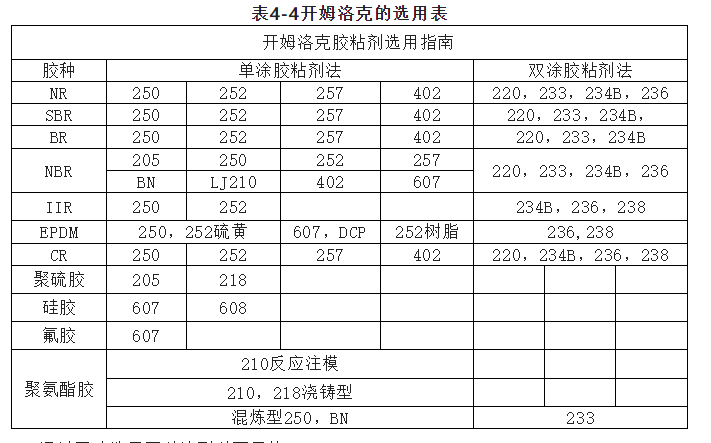 1,胶种,胶种不同粘结难易程度也不同。通用橡胶的粘结性能差异,可用可粘性指数表示,极性橡胶优于非极性橡胶,开姆洛克与橡胶粘结规律如下:(ch233,ch234b,ch236,ch238