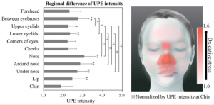 之前看过一篇文献,皮肤面部出油厉害的地方,氧化压力也大,很明显鼻翼两侧和额头等地方就很严重,而氧化压力意味着毛孔、痘痘、衰老……