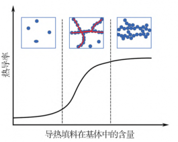 对同种导热填料来讲, 其用量、 形貌和分散性是影响有机硅材料导热性能的主要因素。当填料用量较低时, 填料颗粒在有机硅基体中的接触较少, 难以形成导热通路, 这时有机硅材料的导热性能基本无提高。当导热填料用量增加到一定值时, 颗粒相互接触增多, 形成了导热通路, 这时有机硅材料从热的不良导体转变为热的良导体, 这种转变称之为 “逾渗”。随着导热填料用量的增加, 体系中会形成更多的导热通路, 有机硅材料的导热性能进一步得到改善。而当导热通路与热流方向平行时, 导热性能会得到显著提高。当导热填料用量继续增加时, 体系中的导热网络会逐渐达到饱和状态, 填料之间相互堆积会增加声子散射, 从而产生热阻, 使得材料的导热性能增幅减缓, 如