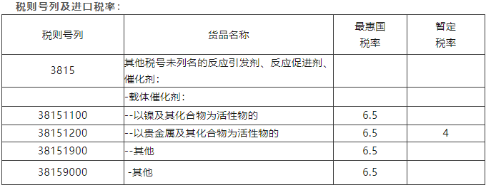 根据《中华人民共和国进出口税则(2020年)》和《进出口税则商品及品目注释(2017年)》,品目38.15项下的催化剂包括引起或促进某些化学反应的制剂,阻止化学反应的产品不归入该品目。