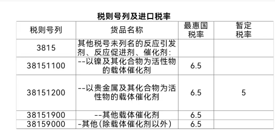 进口税目38.15项下的催化剂时,规范申报的归类要素包括: