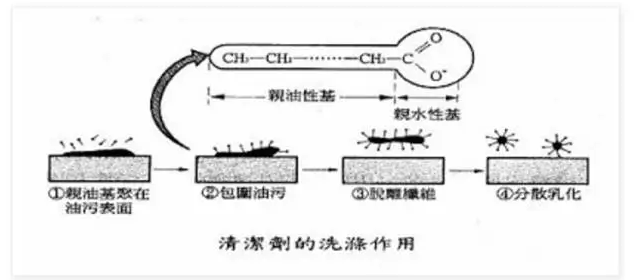 由于界面活性剂同时亲油及亲水的特性,很快的就被人类发现,可以用来解决油水不相容的特性,常见的就是在做沙拉酱(salad dressing)时,添加了蛋黄,让原本油水不相容液体,变成乳霜状,当中就是乳化剂就是蛋黄中的卵磷脂,而且人类也发现,有些植物的汁液,拿来跟水混合后会起泡,可以清洁污垢,其原因就是这些植物汁液中含有植物皂素,可以被拿来做为清洁用的天然界面活性剂,甚至人类也无意中发现可以自己合成界面活性剂,可以用来洗涤清洁,也可以用来作为乳化剂乳化油水,制作出乳霜来涂抹在皮肤上,发挥保湿保护皮肤的作用(前者是肥皂,后者是雪花膏)。