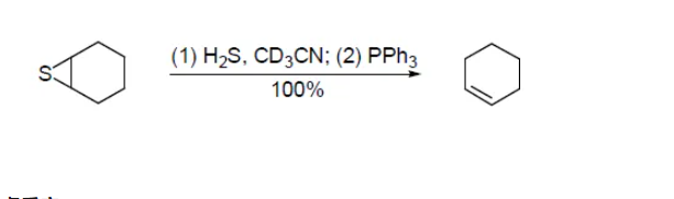 室温下三基膦可以使环硫化合物转化为烯烃 (式4)[4]。