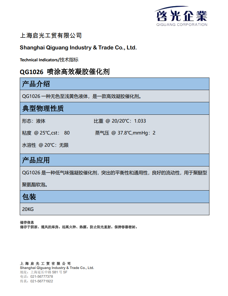 qg1026 是一种低气味强凝胶催化剂,突出的平衡性和通用性,良好的流动性,用于聚醚型