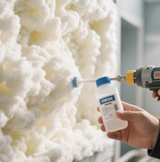 在聚氨酯喷涂泡沫的制备过程中,主要涉及异氰酸酯与多元醇的聚合反应以及异氰酸酯与水的发泡反应。dmdee 的氨基部分能够对异氰酸酯与多元醇的凝胶反应起到催化作用,加速聚合物链的增长,使泡沫快速固化成型;其羟基部分则对异氰酸酯与水的发泡反应具有促进作用,调节发泡速度,控制气泡的形成和生长 。通过合理调控这两个反应的速率,dmdee 能够使喷涂泡沫在喷涂后迅速定型,减少流淌和滴落现象,提高施工效率和产品质量。