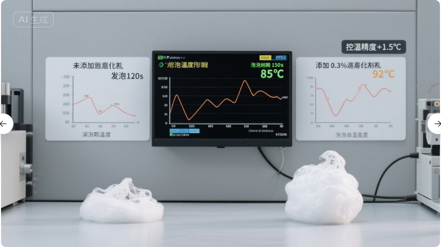 延迟催化剂改变了泡沫上升的动力学曲线。其核心在于将反应高峰(最大放热速率点)的出现时间适度延后,并可能降低峰值强度。