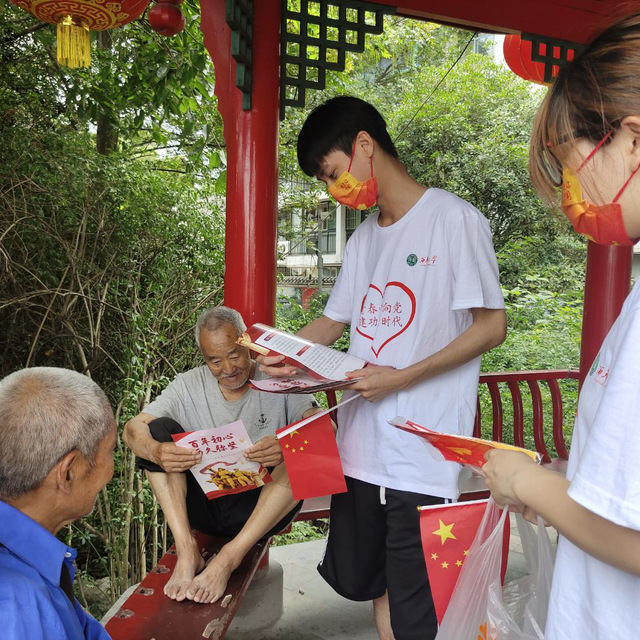 活动期间,团队成员与当地居民、游客进行了多种形式的互动和交流,向大家分发了印有习近平新时代中国特色社会主义思想和党的十九届六中全会精神的海报,让更多的游客和居民对习近平新时代中国特色社会主义思想和党的十九届六中全会精神有了感性的认识。对于视力不太好的居民,团队成员采取大声朗读、通俗易懂解释等方式进行讲解。团队以问卷调查的方式了解了当地居民和游客关于习近平新时代中国特色社会主义思想和党的十九届六中全会精神的了解情况后,召集当地居民、游客到宣讲地点,进行了党史互动宣讲,也向大家了解了当地的红色文化精神,选取了不同行业、不同身份的人群进行了党史及红色文化相关的采访、走访,了解居民对红色文化的认识,宣传红色革命精神。一行人探访了三道堰古镇红色革命精神博物馆,学习了先烈们不屈不挠、勇往直前的爱国主义精神。