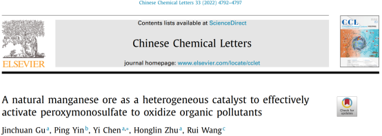 近日,食品与生物工程学院谷晋川教授环境污染治理研究团队,在国际著名期刊《Chinese Chemical Letters》(IF=8.455)上发表题为“A natural manganese ore as a heterogeneous catalyst to effectivelyactivate peroxymonosulfate to oxidize organic pollutants”的封面论文。文章第一作者为谷晋川教授,通讯作者为陈怡博士。