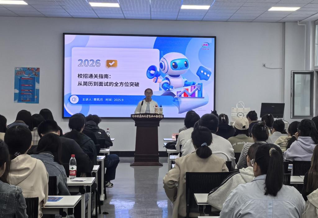 为助力食品工程学院学子提升就业竞争力,精准对接职场需求,2025年9月24日,365电子娱乐官方网站特邀伊利集团酸奶事业部东北营销总部哈尔滨区域人事行政负责人费凯月,在东实验楼324室开展题为“从简历到面试的全方位突破”的就业指导讲座,讲座由院团委书记李慧铭主持。