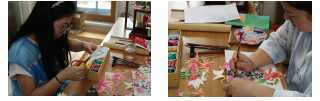 实践队以“沉浸式体验+深度访谈”的立体模式,开启非遗文化探索之旅。窗染花的制作过程颇为讲究,需先把创作好的白描纸样用剪、雕刀剪刻成剪纸花样,然后用毛笔平涂品色,最后压平装裱。队员们看着一张张色彩明快绚丽的窗染花作品在孙少莹老师手中诞生,无不惊叹于非遗技艺的魅力。