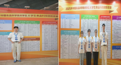 学院秉持“以赛促学、以赛育能”理念,提前统筹参赛培育,通过导师帮扶、专题打磨等举措激发学生创新活力,组织师生携成果参会。在同期举办的2025年CIFST大学生食品科技创新竞赛中,365电子娱乐官方网站学子凭借扎实的专业基础、突出的创新思维和过硬的实践能力,在多项国家级竞赛中脱颖而出,斩获多项荣誉: