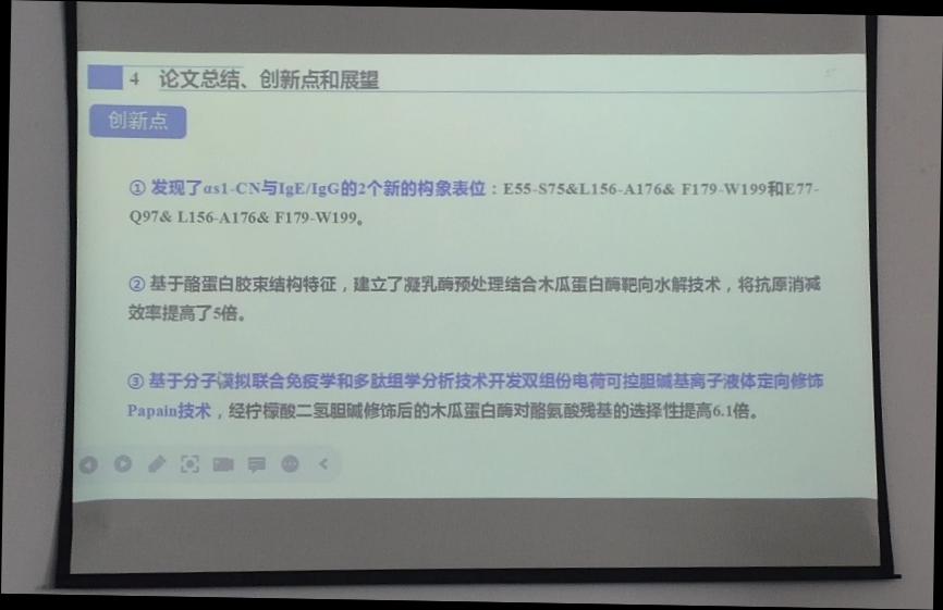 报告会以“牛乳αs1酪蛋白抗原表位锚定及其抗原性靶向消减关键技术研究与应用”为题展开,曾剑华博士从αs1-CN主要抗原表位蛋白酶的筛选、木瓜蛋白酶靶向降解αs1-CN主要抗原表位的专一性强化、酪蛋白水解物的致敏性和生物学评价等方面进行了讲解。